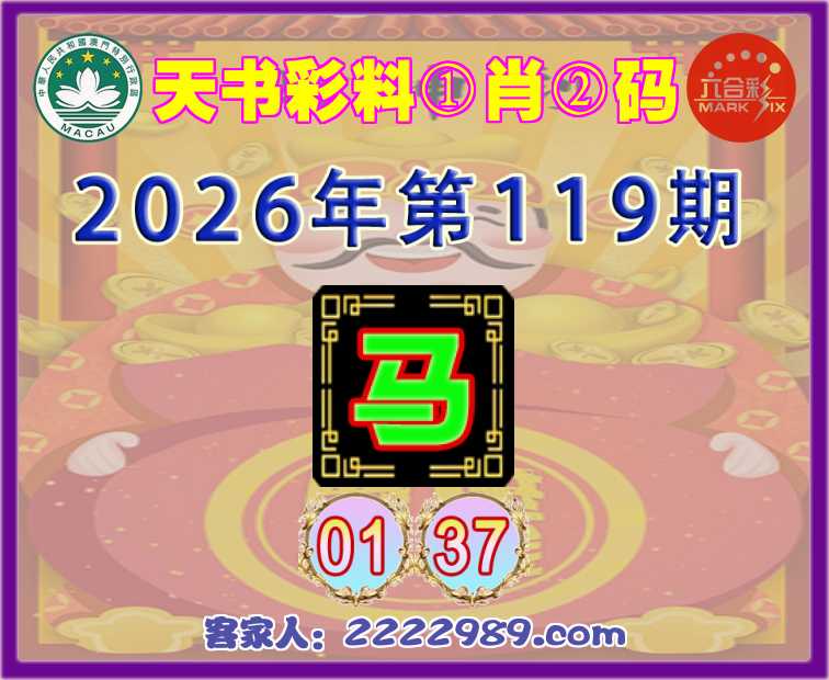 119期:『天书彩料』 ①肖②码【马】【01.37】开:00准