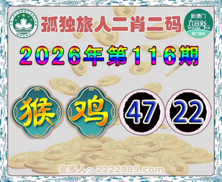 116期: 孤独旅人 🎉二肖二码🎉【猴】【47.22】开:鸡22