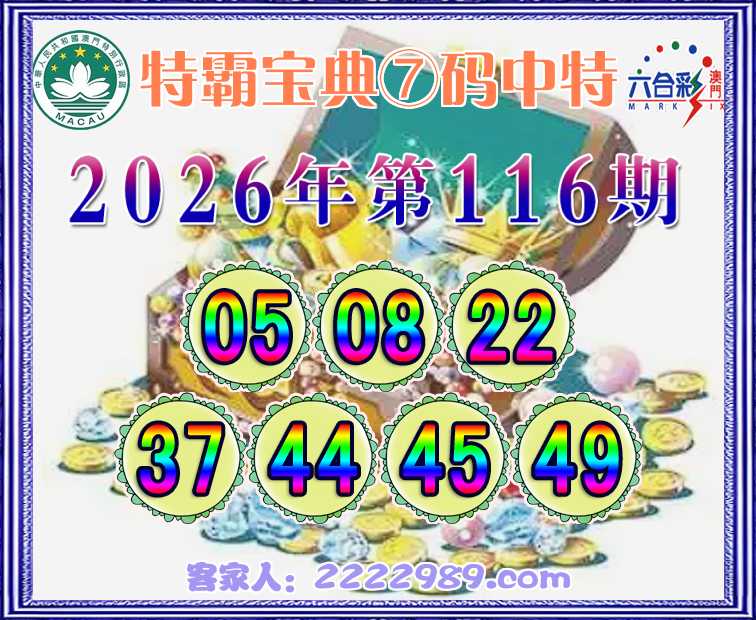 116期:『特霸宝典』 🪢⑦码中特🪢【05.08.22.37.44.45.49】开:22