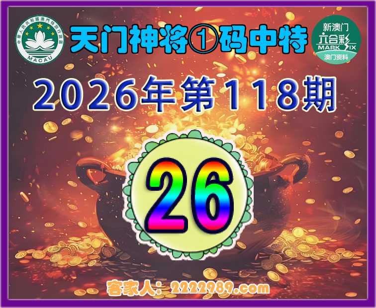 118期:〖天门神将〗 ①码中特【26】开:08