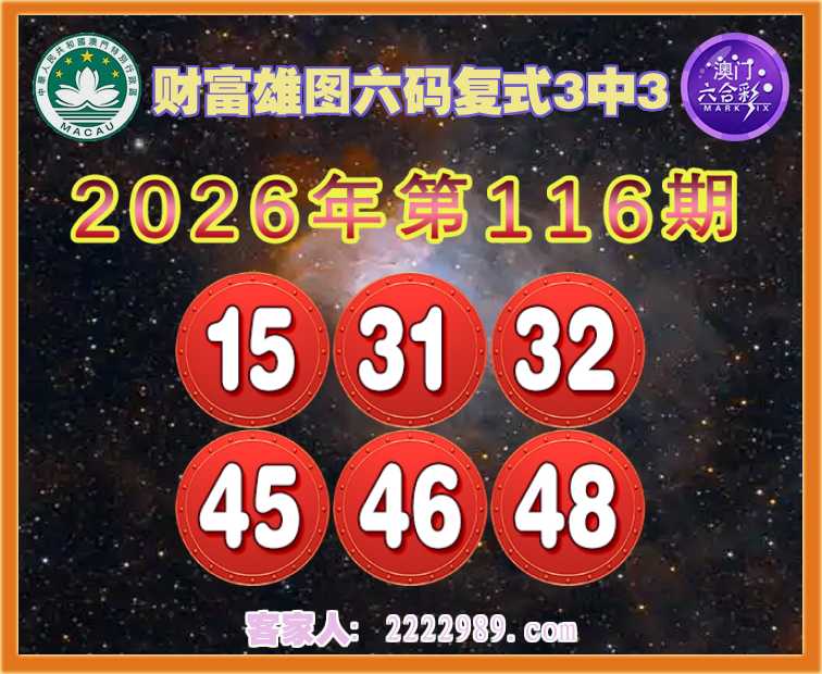 116期: 『财富雄图』 六码复式3中3