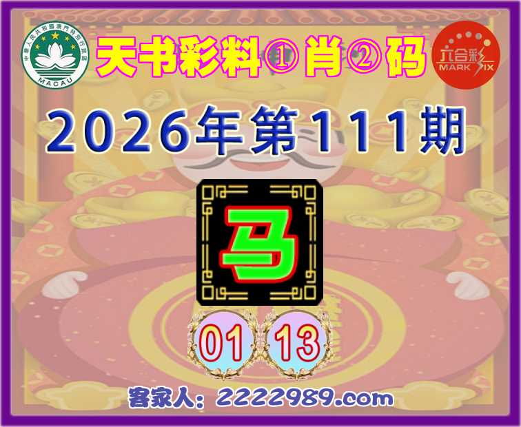 111期:『天书彩料』 ①肖②码】【01.13】开:马01