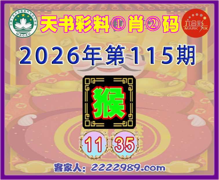 115期:『天书彩料』 ①肖②码【猴】【11.35】开:兔04