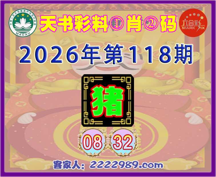 118期:『天书彩料』 ①肖②码】【08.32】开:猪08