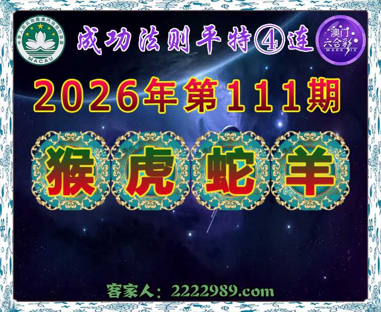 111期:【成功法则】 平特④连【猴虎蛇羊】开:猴23,虎41,蛇38,羊24