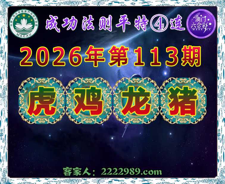 113期:【成功法则】 平特④连【虎鸡龙猪】开:虎17,鸡22,龙15,猪32