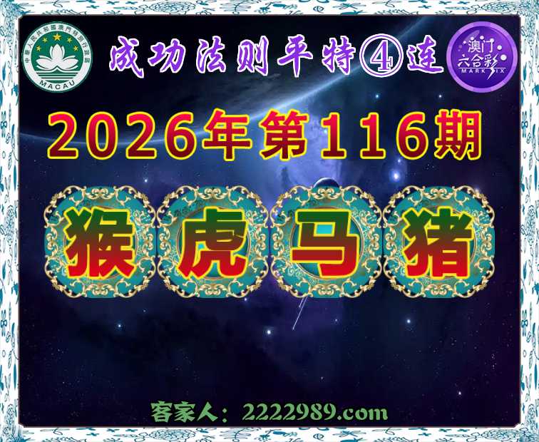 116期:【成功法则】 平特④连【猴虎马猪】开:鸡22