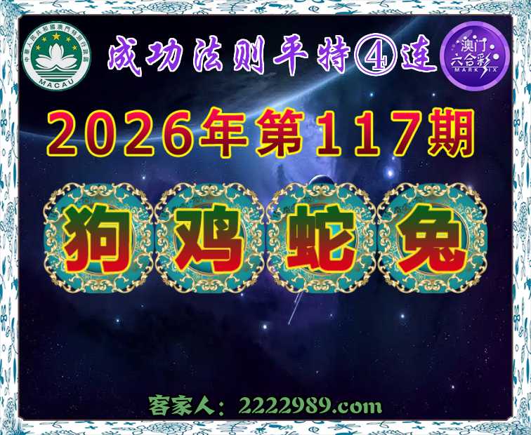 117期:【成功法则】 平特④连【狗鸡蛇兔】开:狗45,鸡46,蛇02,兔16