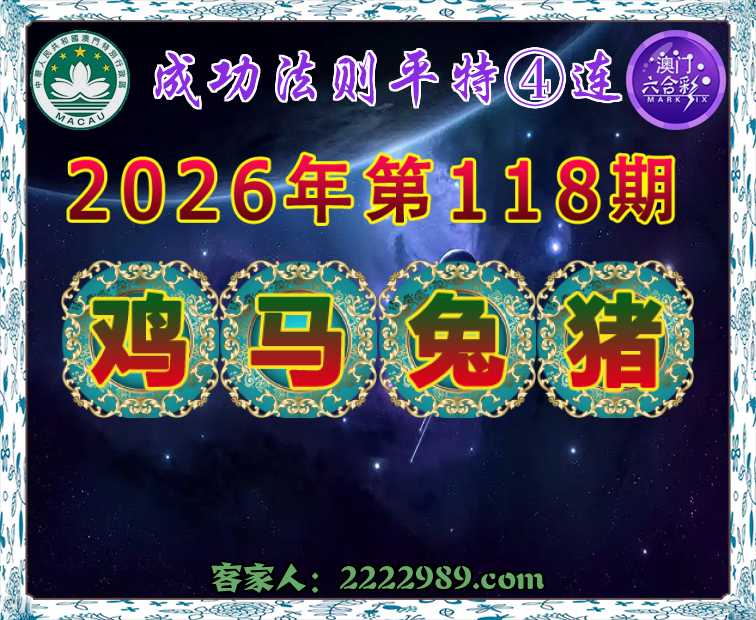 118期:【成功法则】 平特④连【鸡马兔猪】开:鸡22,马37,兔40,猪08