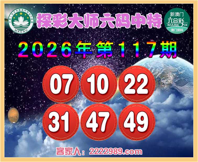 117期:【探彩大师】 六码中特【07.10.22.31.47.49】开:16