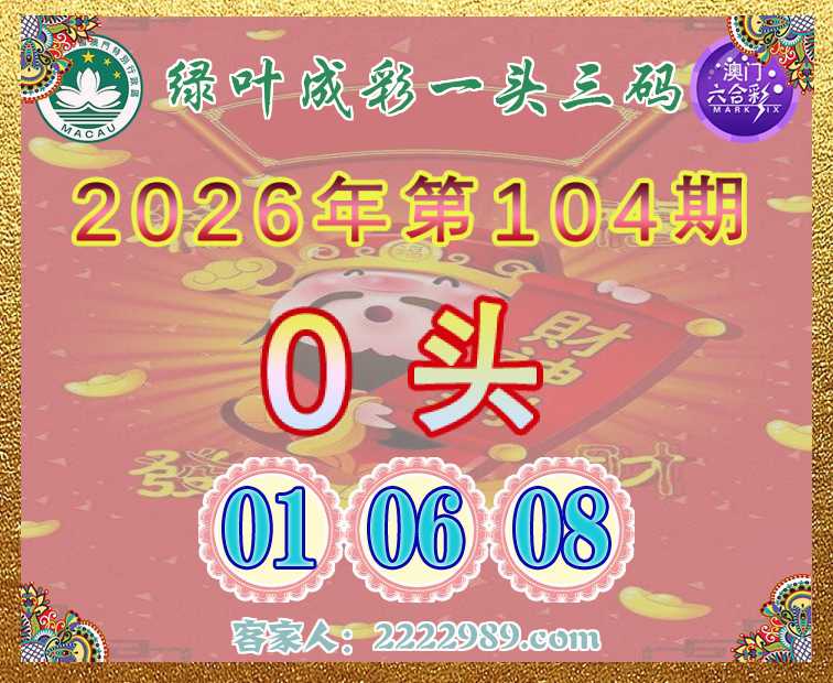 104期:『绿叶成彩』 一头三码0头主:01.06.08】开:马01