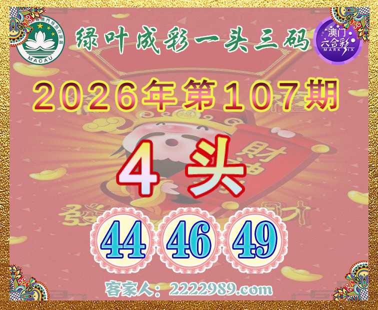 107期:『绿叶成彩』 一头三码4头主:44.46.49】开:马49