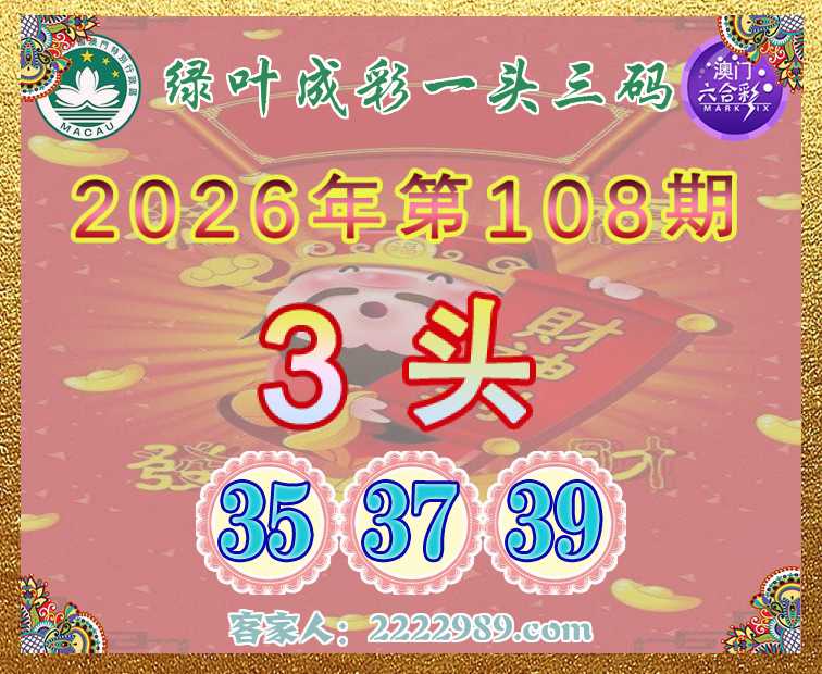 108期:『绿叶成彩』 一头三码【3头主:35.37.39】开:狗45
