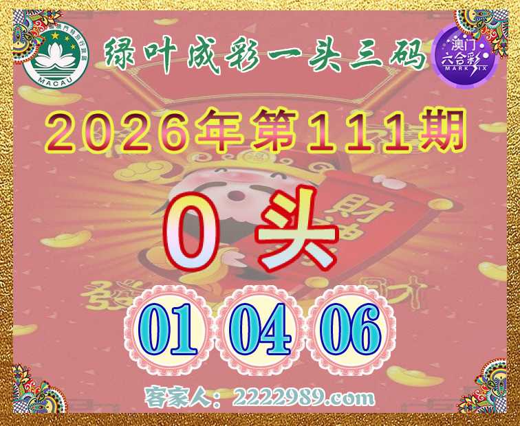 111期:『绿叶成彩』 一头三码0头主:01.04.06】开:马01
