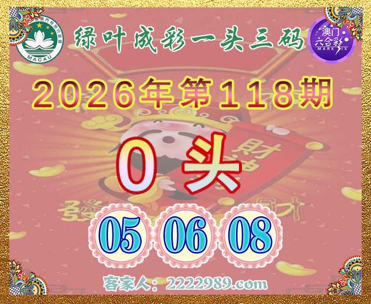 118期:『绿叶成彩』 一头三码0头主:05.06.08】开:猪08