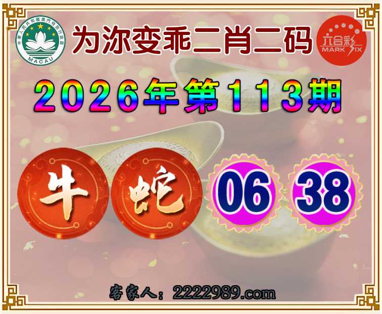 113期:【为沵变乖】 二肖二码【牛】【06.38】开:蛇02