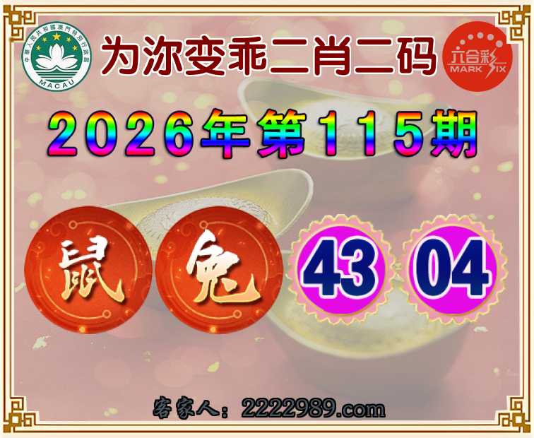 115期:【为沵变乖】 二肖二码【鼠】【43.04】开:兔04