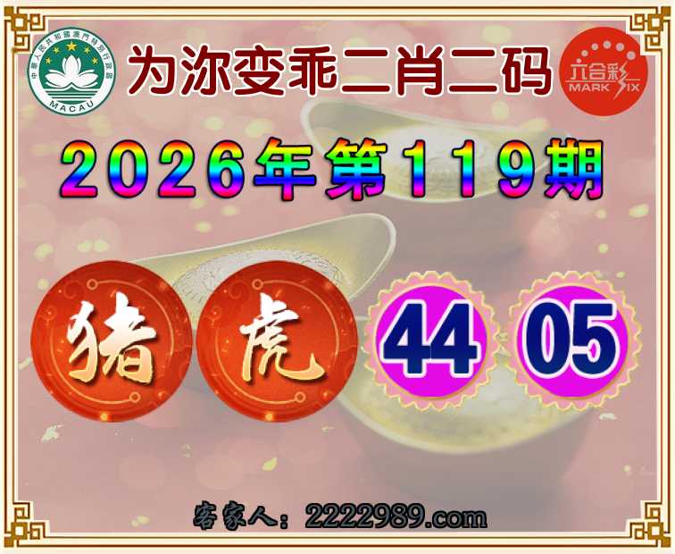 119期:【为沵变乖】 二肖二码【猪虎】【44.05】开:00准