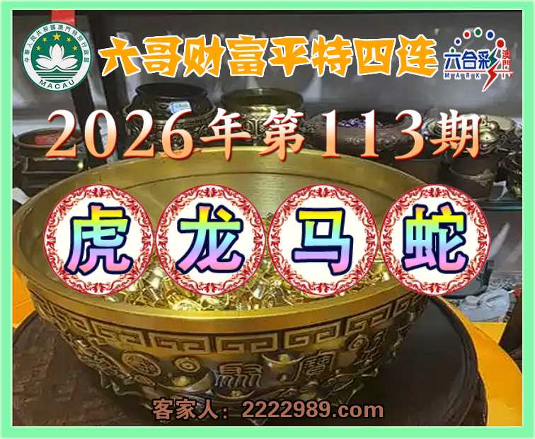 113期:『六哥财富』 平特四连【虎龙马蛇】开:虎17,龙15,马49,蛇02