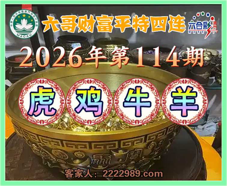 114期:『六哥财富』 平特四连【虎鸡牛羊】开:虎41,鸡10,牛30,羊36