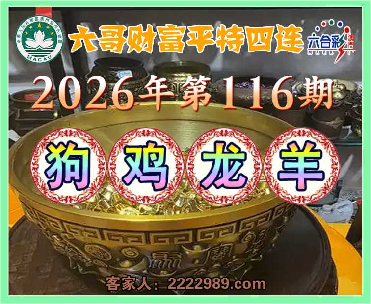 116期:『六哥财富』 平特四连【狗鸡龙羊】开:狗33,鸡22,龙15,羊48