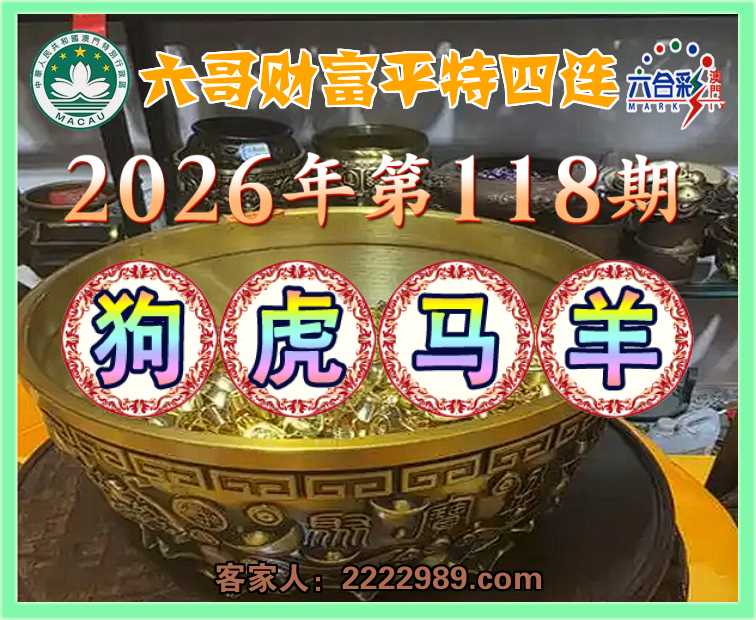 118期:『六哥财富』 平特四连【狗虎马羊】开:猪08
