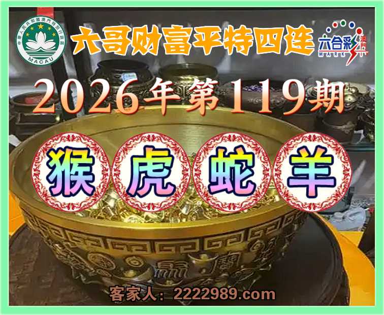 119期:『六哥财富』 平特四连【猴虎蛇羊】开:00准