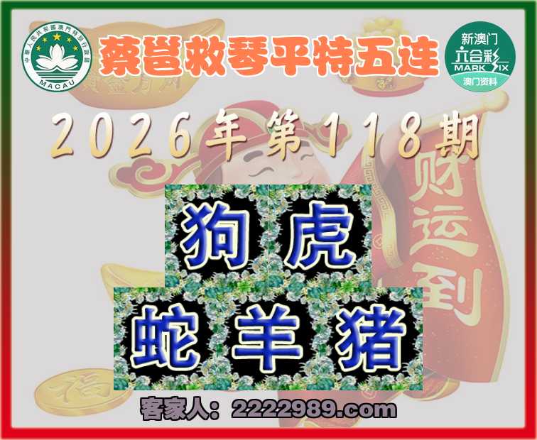 118期:【蔡邕救琴】 平特五连【狗虎蛇羊猪】开:猪08