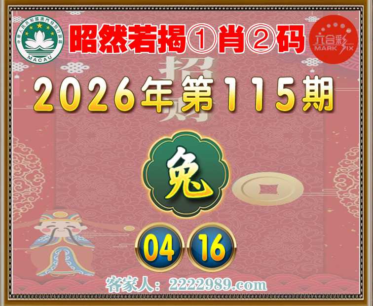 115期:【昭然若揭】 ①肖②码】【04.16】开:兔04