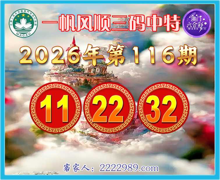 116期:『一帆风顺』 三码中特【11.22.32】开:22